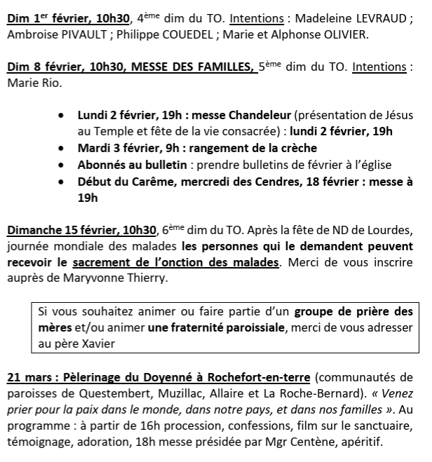 - Galette Paroissiale – 27/01/2026Cette année, le 27 janvier dernier, la grande salle Michel Le Chesne résonnait de rires et de conversations joyeuses : plus d’une centaine de paroissiensLire la suite “Galette Paroissiale – 27/01/2026”