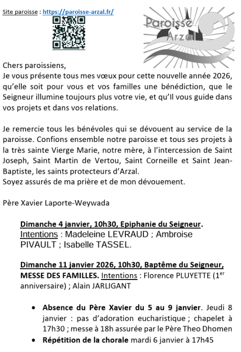 Messe à 10h30 à ( Eglise Saint Martin d’Arzal)